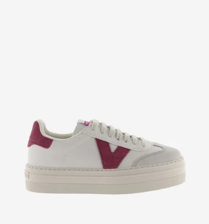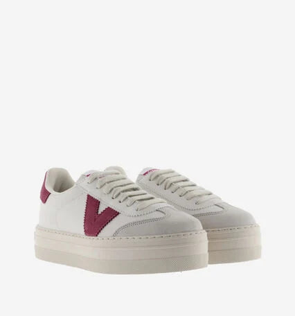 White platform sneakers with a 4 cm platform for women, ideal for those seeking an extra touch of height and style. Made in Spain with faux leather material and suede details, these sneakers stand out with colourful details on the side logo and heel. Additionally, the cyclist cut on the toe adds a modern touch to their design.