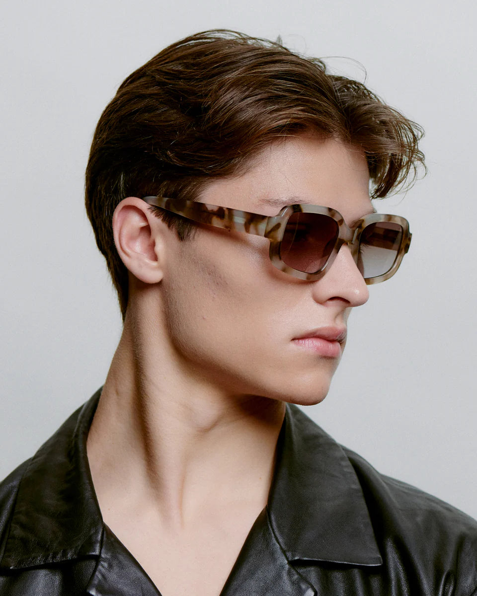 Pluto - Cookie Dough is a characterful, oversized sunglass with soft curves. The voluminous frame evokes a sense of vintage glamor. Pluto Black is a strong statement for a style with edge and personality.