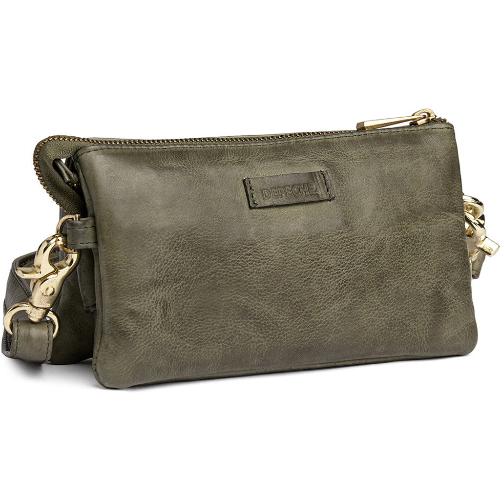 Clutch / Crossover in butter soft quality leather. This clutch has a simple but feminine look, due to the fine golden coloured details. The bag is decorated with a zipper pocket on the front.