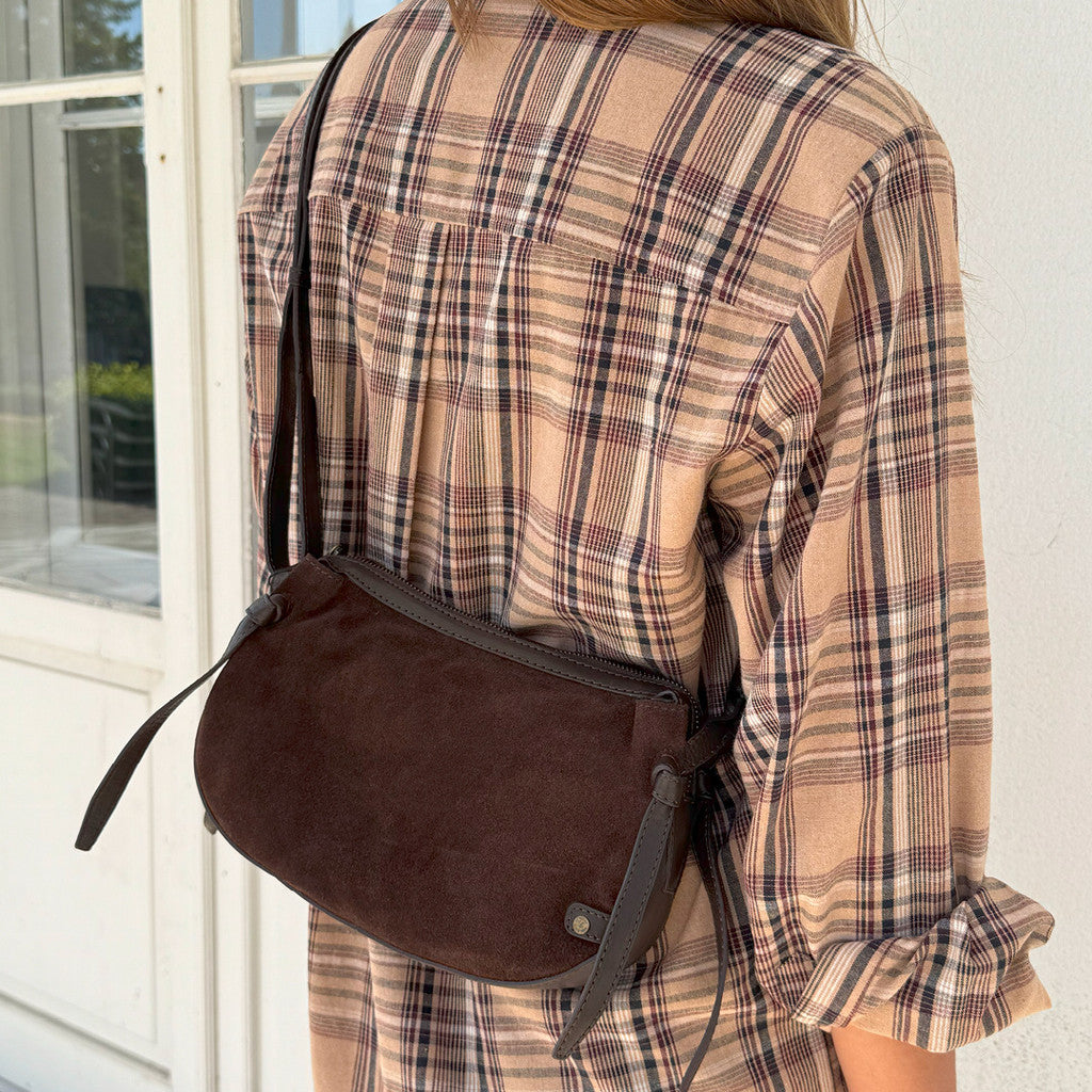 This suede crossover bag is the epitome of timeless elegance with a touch of personality. The design is simple, making it a versatile favourite that can be styled for both everyday use and special occasions.