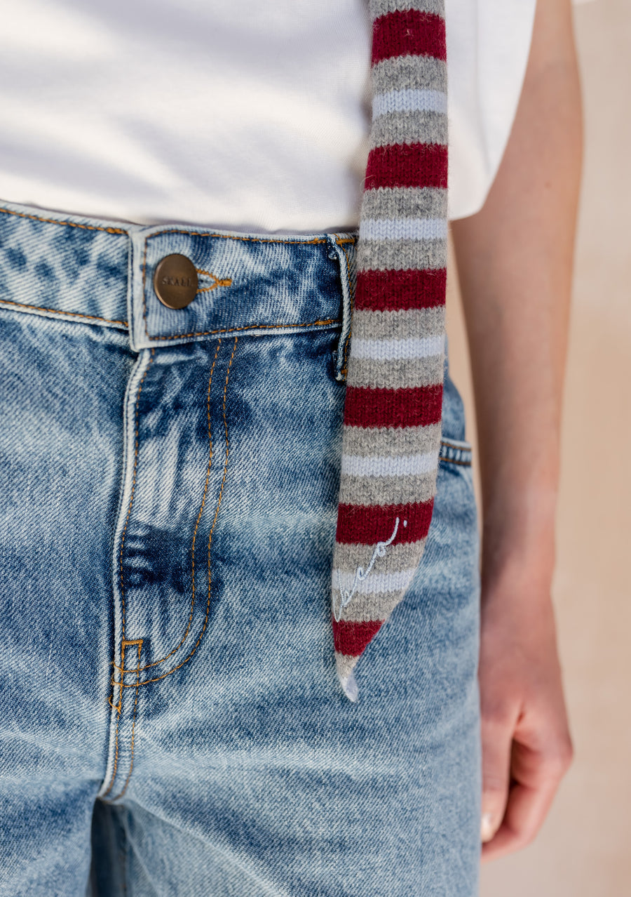In a season of layering, the smallest pieces can make the biggest entrance. Inspired by vintage showmanship and made from buttery-soft merino wool, this TBCo skinny scarf in a charcoal grey and navy diamond harlequin pattern is a playful twist on tradition. Lightweight and breathable, it’s perfect for the season shift – the kind of scarf you forget you’re wearing, until someone compliments you on it.