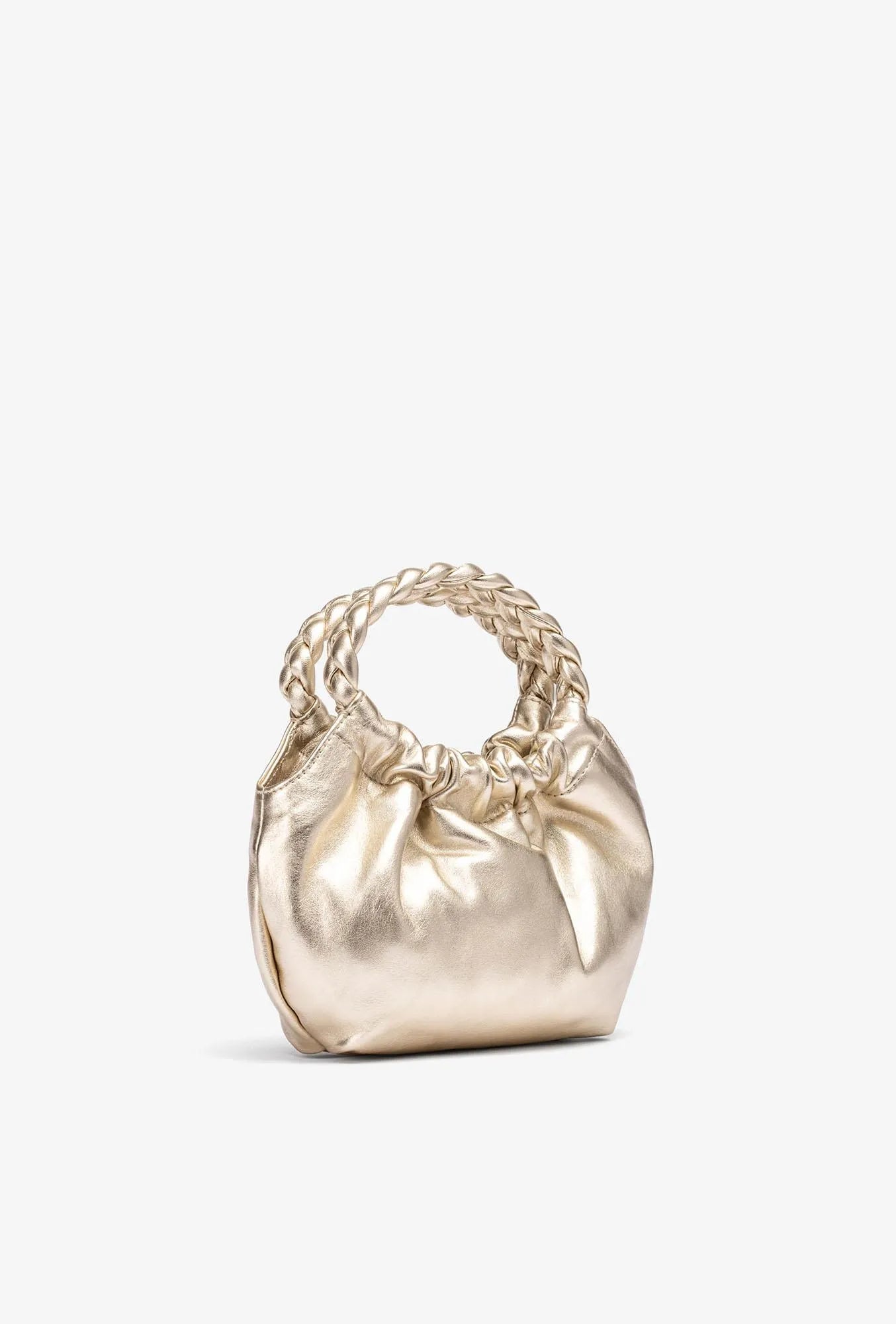 Small handbag made of suede. Round braided handles in a matching tone of suede. Adjustable suede crossbody strap. Magnetic snap closure. The ZAMELI bag is this season's must-have accessory.
